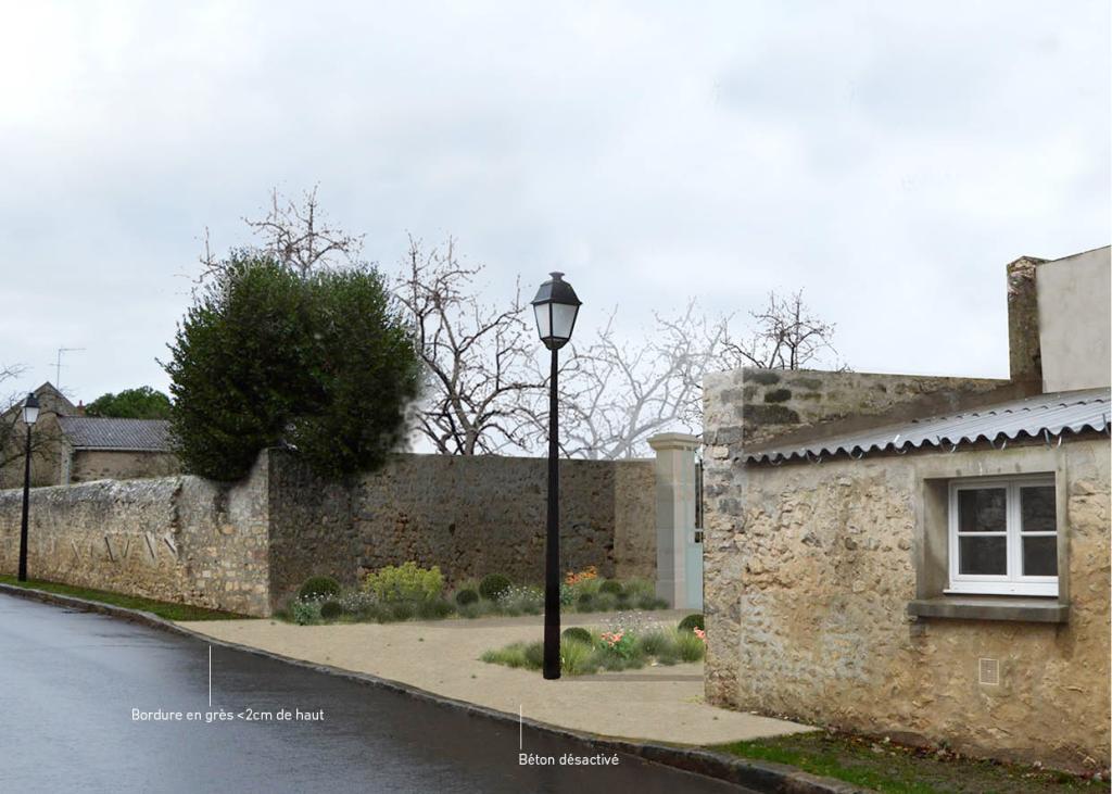 Le portail situé en retrait de 5,00m permettrait également d’agrémenter le cadre paysager de la voie communale avec des plantes vivaces de part et d’autre du nouvel accès. Ces dernières seraient contenues dans l’emprise foncière du domaine, qui en assureraient également l’entretien.